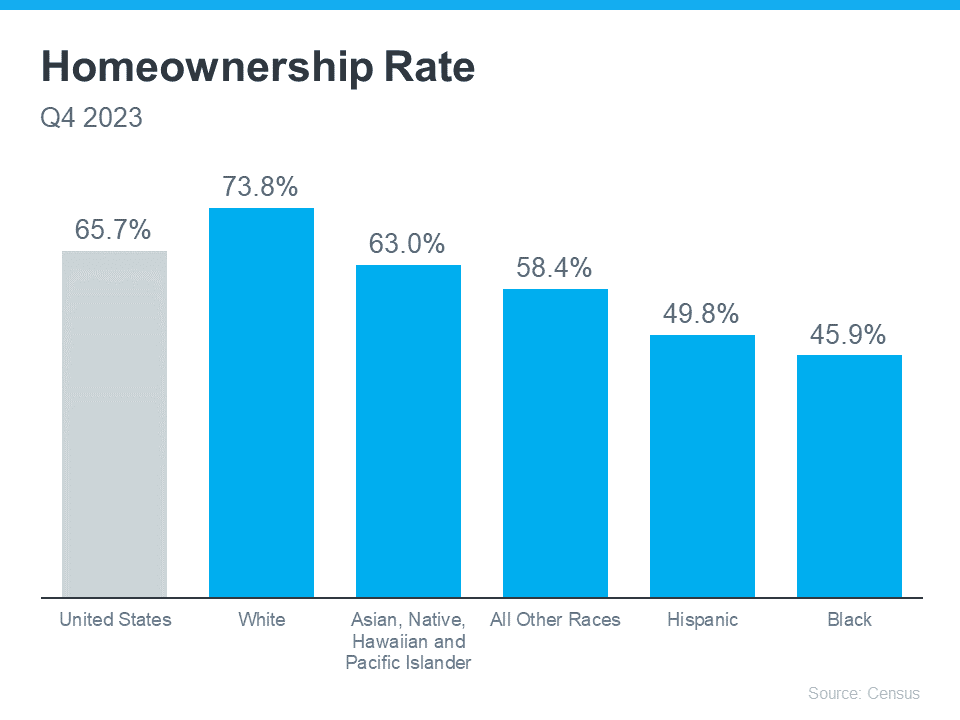 It’s clear that achieving homeownership is more challenging for certain groups because there’s still a measurable gap between the overall average U.S. homeownership rate and that of non-white groups. Today, Black households continue to have the lowest homeownership rate nationally (see graph below):